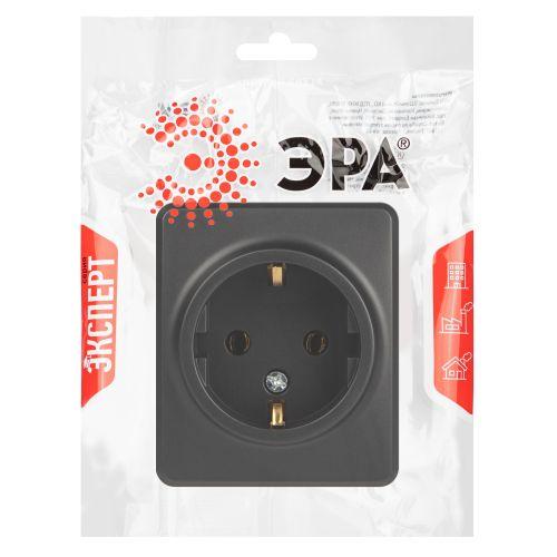 - Розетка 1-м ОП Эксперт 11-2203-05 16А IP20 250В 2P+E Schuko антрацит Эра Б0063008
