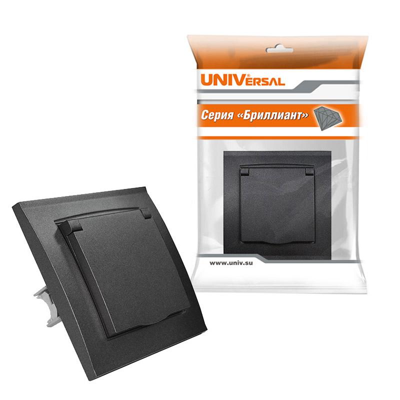 - Розетка 1-м СП Бриллиант 16А IP20 с заземл. с крышкой в сборе графит Universal 7947649-Gr