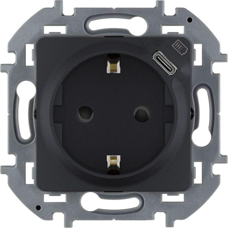 - Розетка 1-м СП Inspiria 16А IP20 250В 2P+E немецк. стандарт с заряд. устройством USB тип C 1.5А 5В механизм антрацит IEK 673773