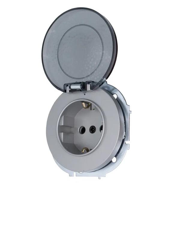 - Розетка 1-м СП OSEN IP44 с заземл. с крышкой ПБТ механизм сер. матов. LEZARD 743-7488-123BIPCH