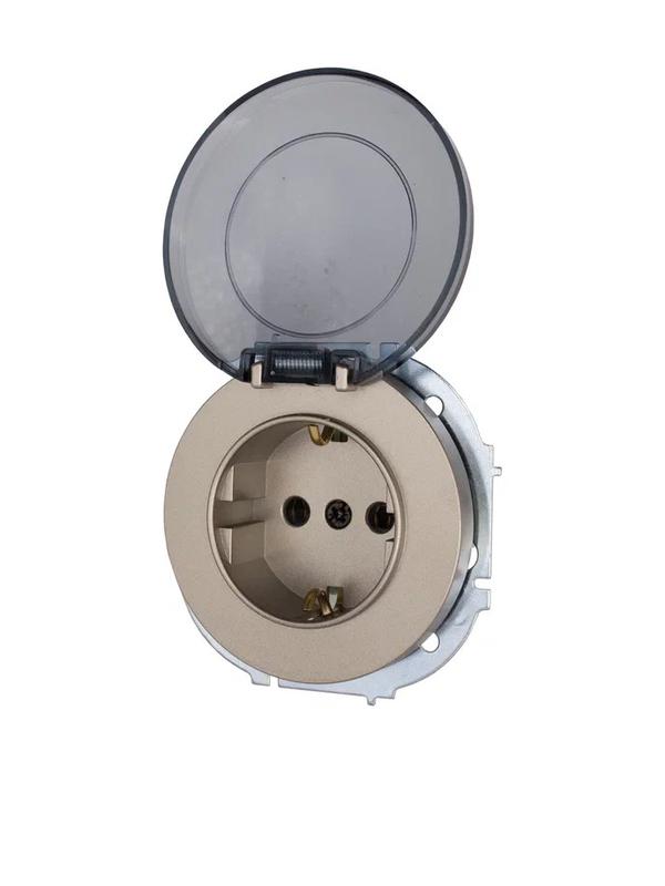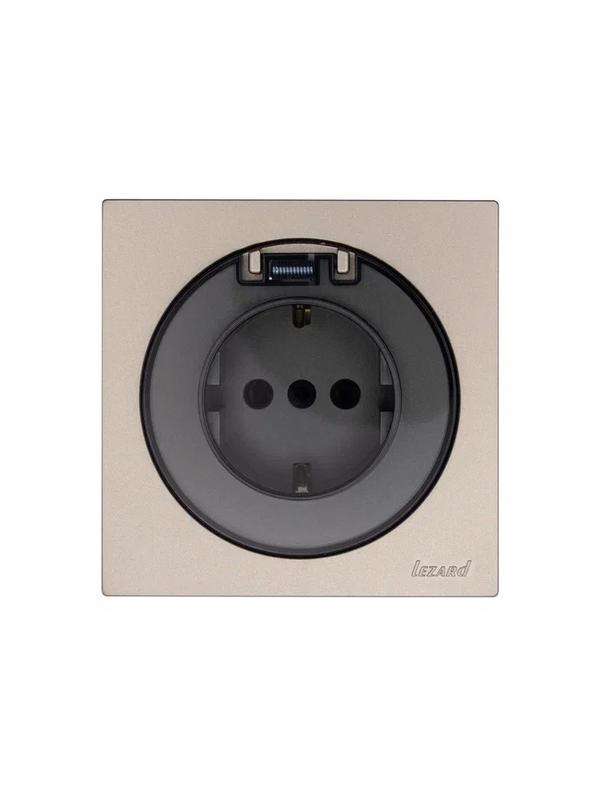 - Розетка 1-м СП OSEN с заземл. с крышкой ПБТ механизм титан LEZARD 743-3788-123B