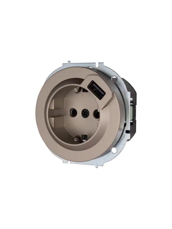 - Розетка 1-м СП OSEN с заземл. + USB разъем механизм титан LEZARD 743-3788-181