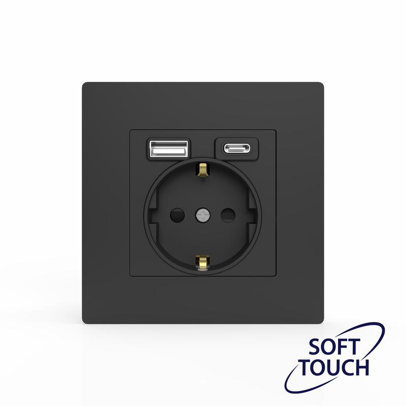- Розетка 1-м СП Pixel IP20 с заземл. с 2-мя заряд. устр. USB тип A+C механизм карбон TOKOV ELECTRIC TKE-PX-R1U2AC-C14
