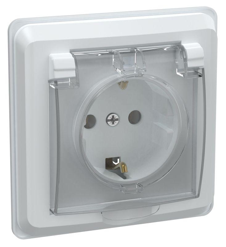 - Розетка 1-м СП Вега РСбш10-3-ВБ 16А IP44 с заземл. защ. шторки с крышкой бел. GENERICA ERV16-K01-16-DM