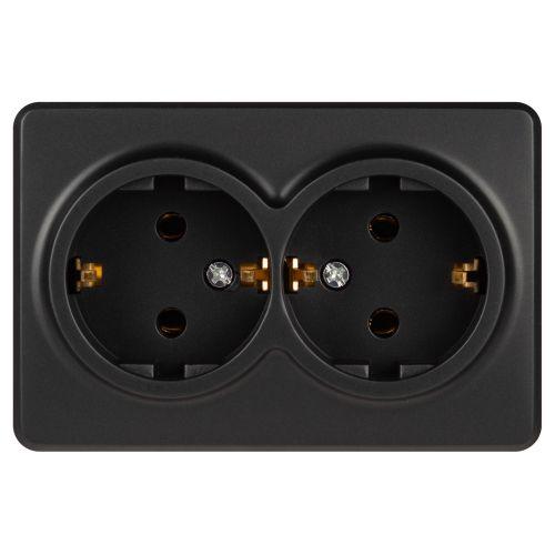- Розетка 2-м ОП Эксперт 11-2205-05 16А IP20 250В 2х2P+E Schuko с заземл. антрацит Эра Б0063047