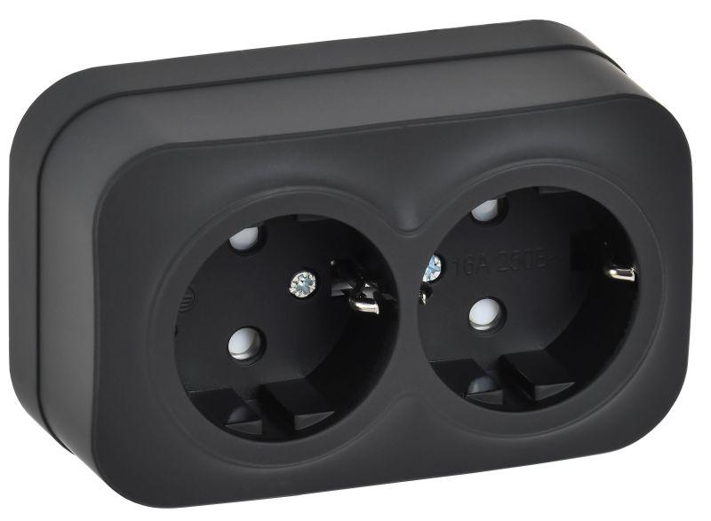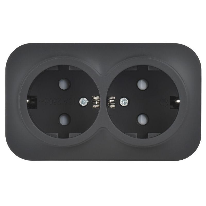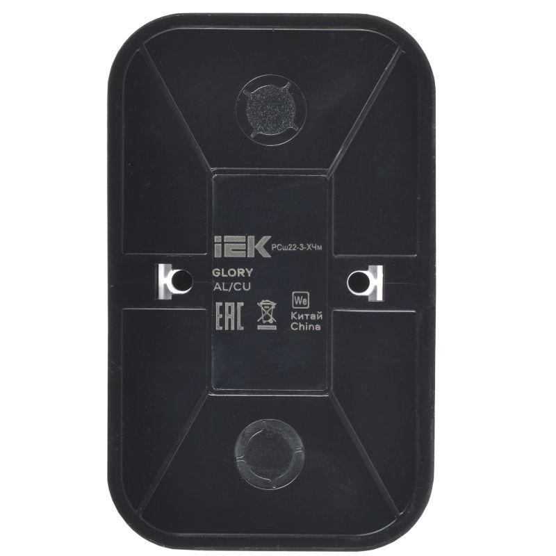- Розетка 2-м ОП GLORY РСш22-3-ХЧм 16А с заземл. защ. шторки черн. матов. IEK ERH24-K02M-16