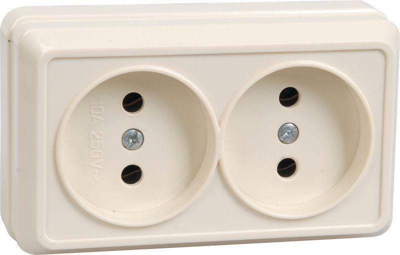- Розетка 2-м ОП Октава 10А IP20 без заземл. крем. GENERICA ERO20-K33-10-DC
