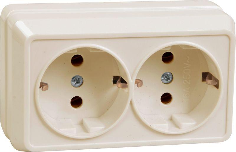 - Розетка 2-м ОП Октава РС22-3-ОКм 16А IP20 с заземл. крем. GENERICA ERO21-K33-16-DC