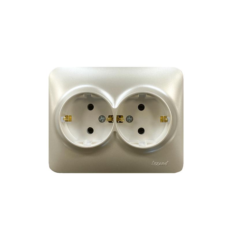 - Розетка 2-м СП ASTI 16А IP20 с заземл. термопласт жемчуж./бел. перламутр. LEZARD 7081-3000-127B