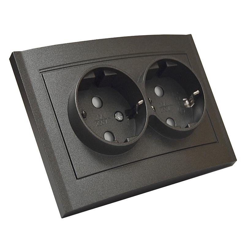 - Розетка 2-м СП Бриллиант 16А IP20 с заземл. защ. шторки в сборе графит Universal 7947540-Gr