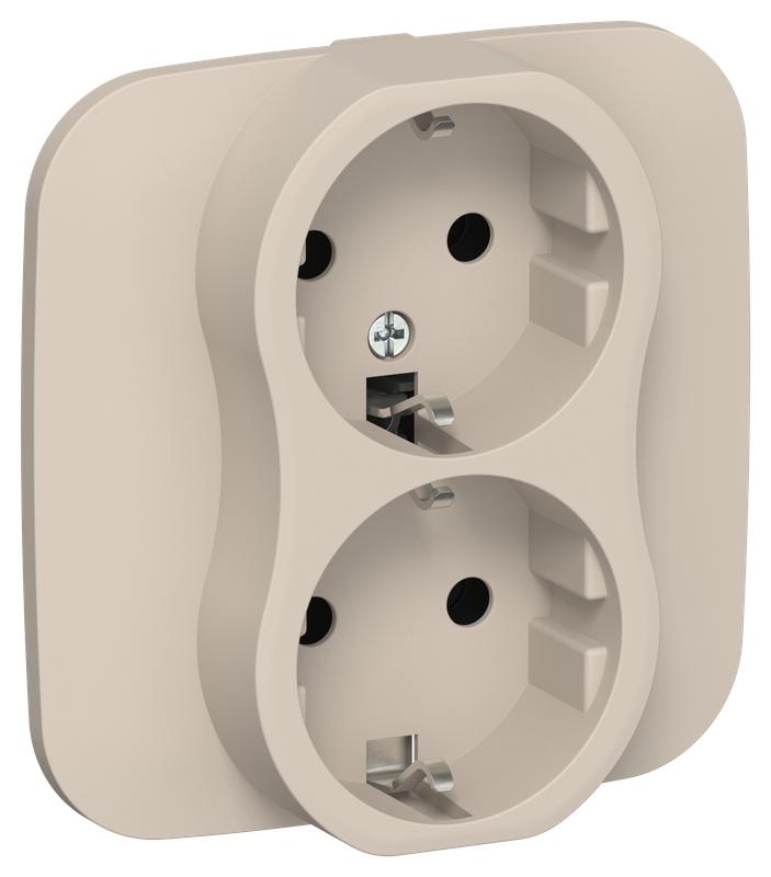 - Розетка 2-м СП FLITE РС12-1-А-ФлЛ 16А с заземл. без защ. шторок безвинтовое крепление в сборе механизм льняной IEK FI-R21A-16-1-K88