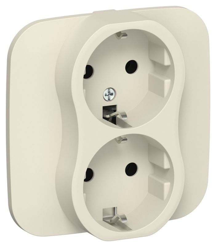 - Розетка 2-м СП FLITE РС12-1-А-ФлСл 16А с заземл. без защ. шторок безвинтовое крепление в сборе механизм сливочный IEK FI-R21A-16-1-K86