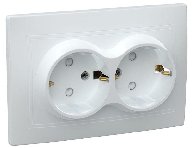 - Розетка 2-м СП Кварта РСш12-3-КБ 16А IP20 с заземл. защ. шторки бел. GENERICA ERK21-K01-16-DM