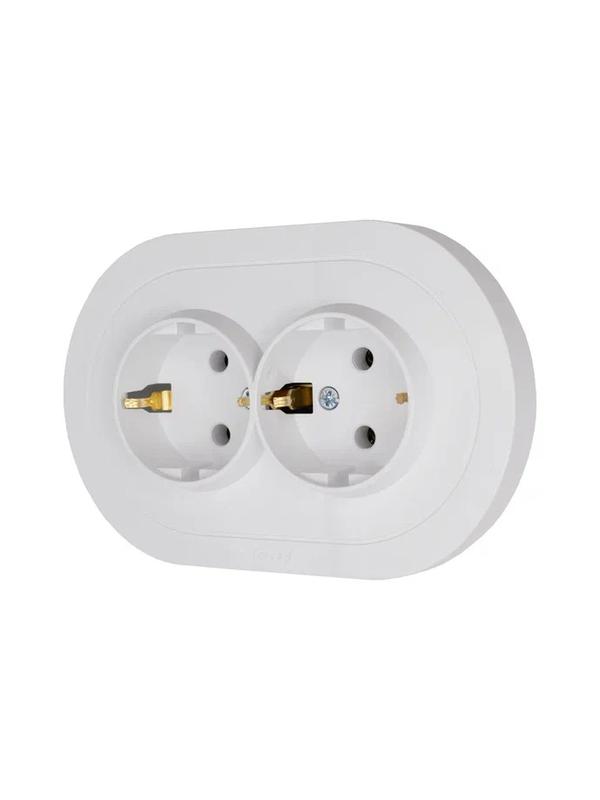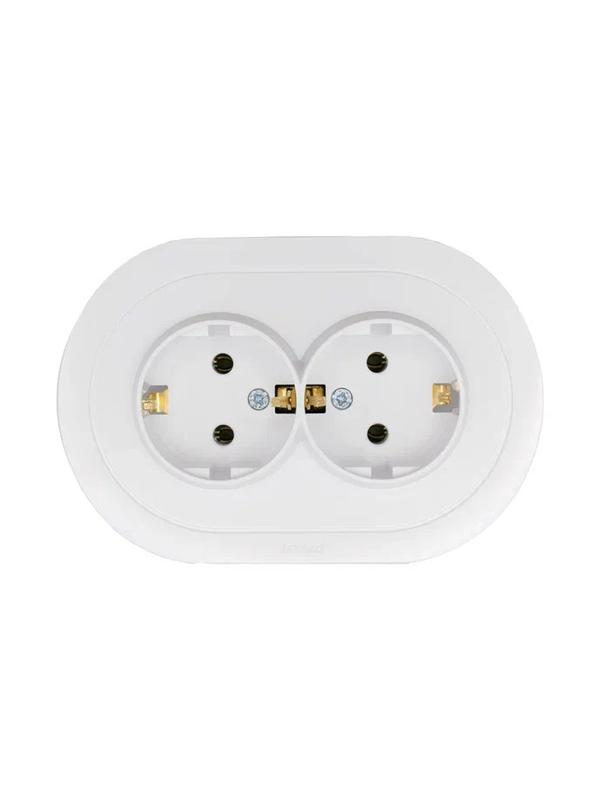 - Розетка 2-м СП OSEN с заземл. ПБТ круглая механизм бел. LEZARD 744-0200-127B
