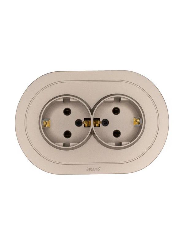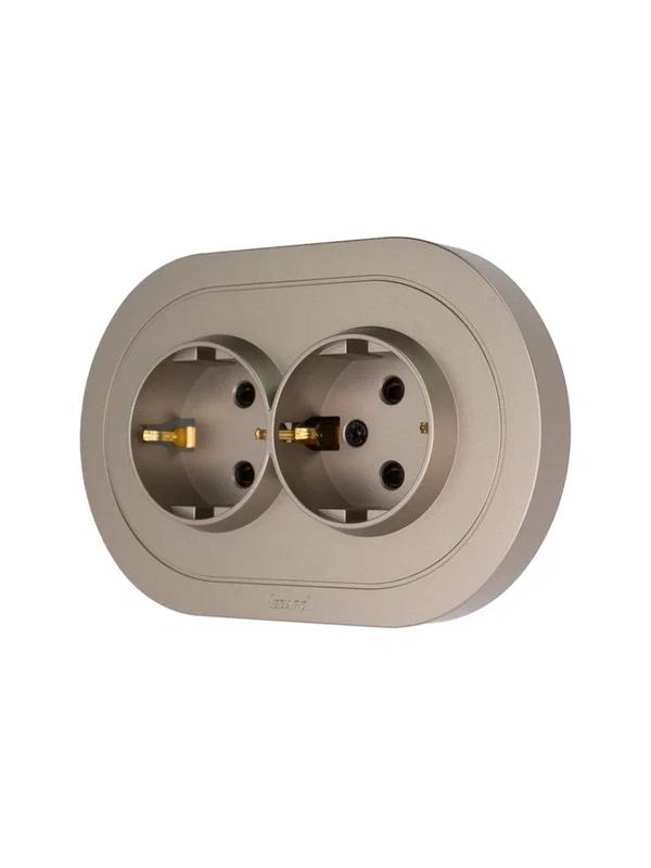 - Розетка 2-м СП OSEN с заземл. ПБТ круглая механизм титан LEZARD 744-3700-127B