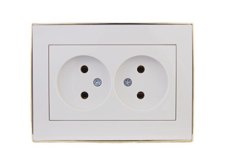 - Розетка 2-м СП Rain 16А IP20 без заземл. с зол. боковой вставкой керамика бел. LEZARD 703-0226-128
