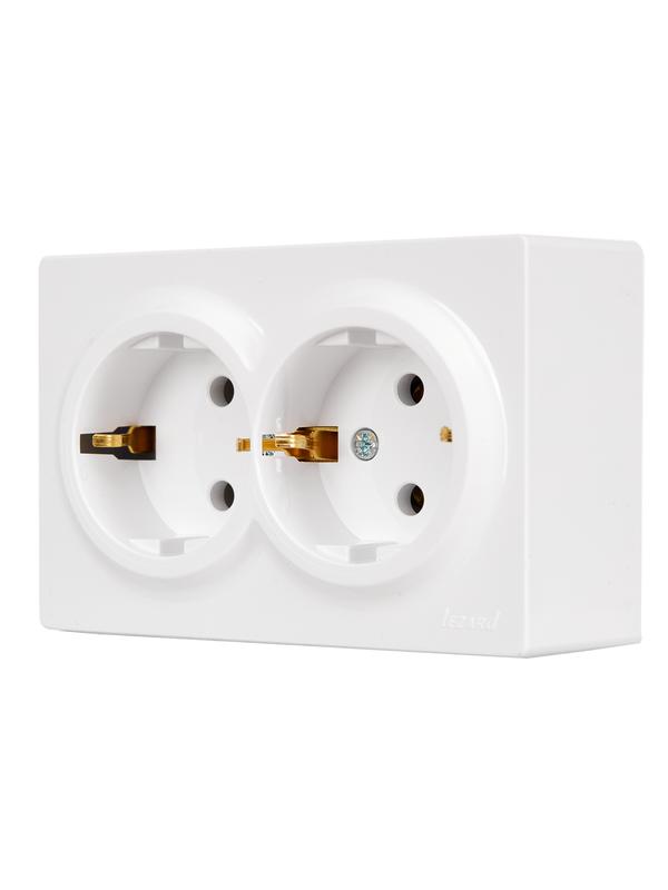 - Розетка 2-м ОП LETO с заземл. закрытый корпус ПБТ бел. LEZARD 752-0200-127B