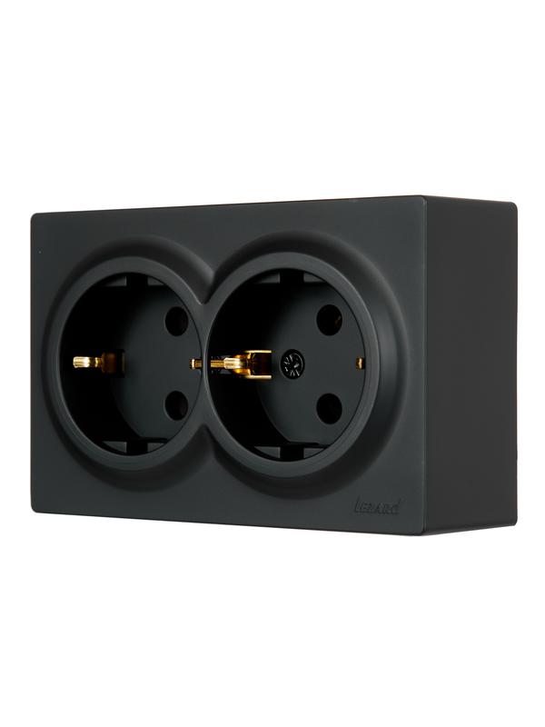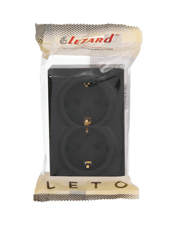 - Розетка 2-м ОП LETO с заземл. закрытый корпус ПБТ черн. бархат LEZARD 752-4200-127B