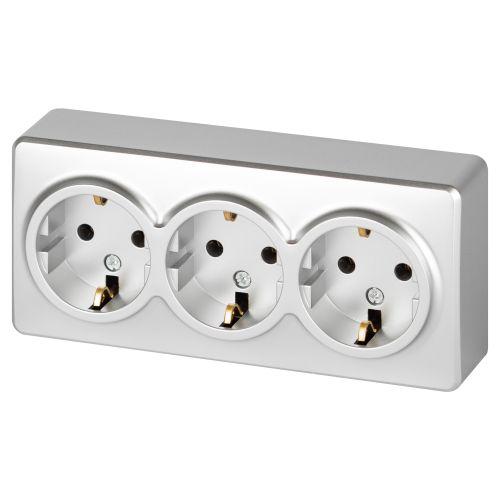 - Розетка 3-м ОП Эксперт 11-2208-03 16А IP20 250В 3х2P+E Schuko с заземл. алюм. Эра Б0063010