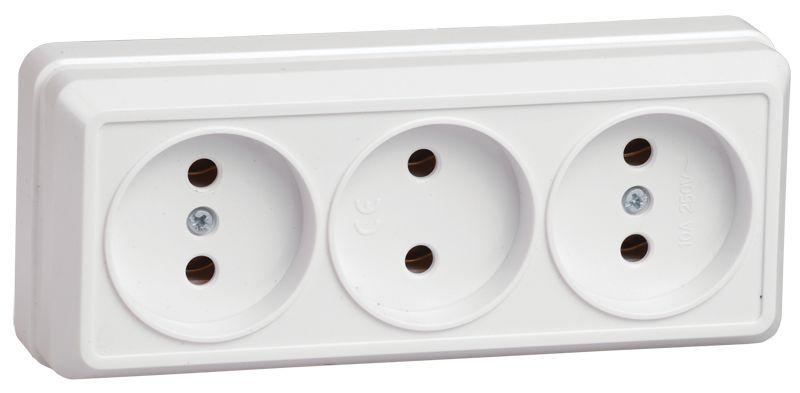 - Розетка 3-м ОП Октава 10А IP20 без заземл. бел. GENERICA ERO30-K01-10-DC