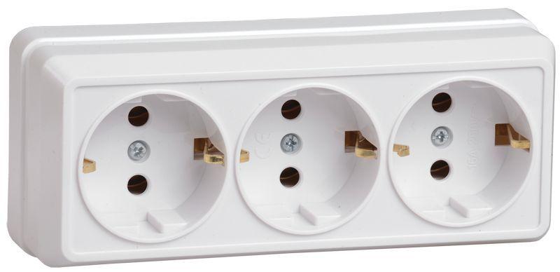 - Розетка 3-м ОП Октава РС23-3-ОБ 16А IP20 с заземл. бел. GENERICA ERO31-K01-16-DC