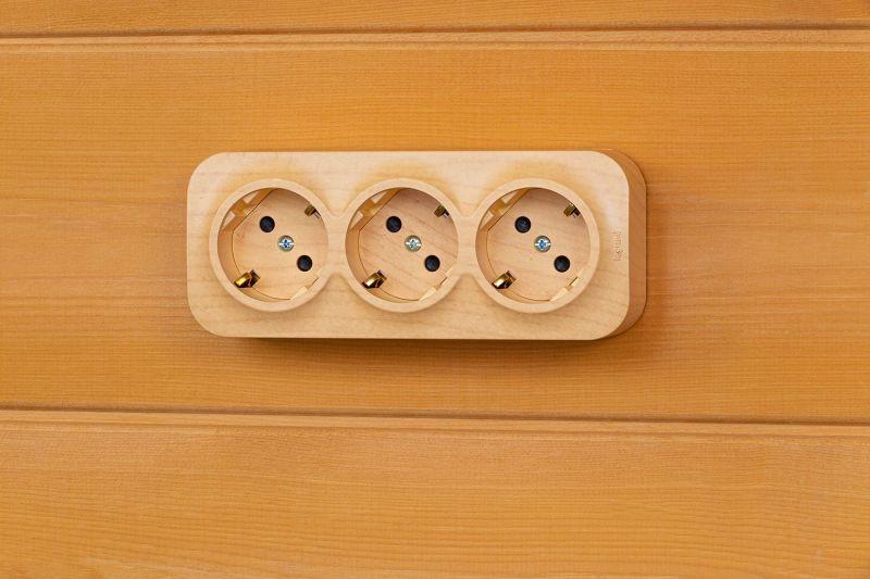 - Розетка 3-м ОП Quteo 16А IP20 250В 3х2P+E с заземл. защ. шторки дерево IEK 782288