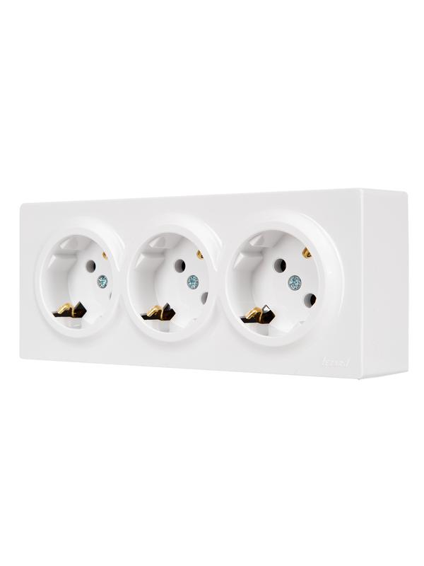 - Розетка 3-м ОП LETO с заземл. закрытый корпус ПБТ бел. LEZARD 752-0200-127BUP
