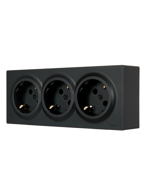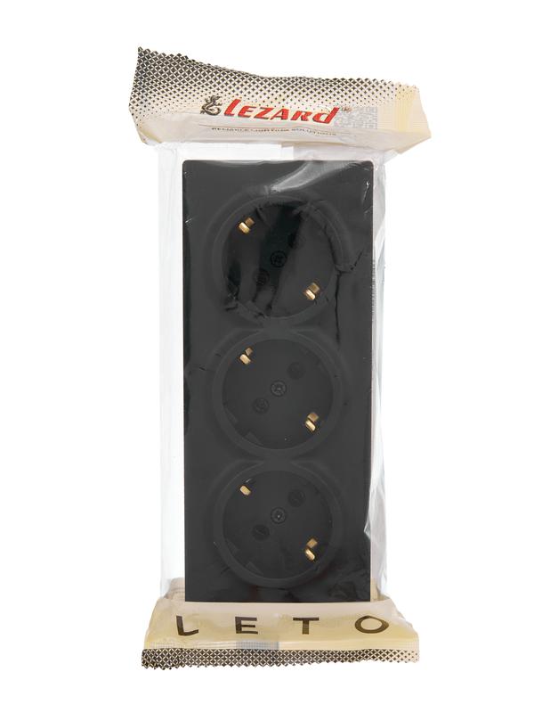 - Розетка 3-м ОП LETO с заземл. закрытый корпус ПБТ черн. бархат LEZARD 752-4200-127BUP
