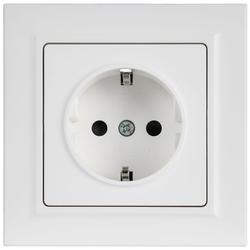- Розетка BRITE РСР14-1-0-БрАБ 16А в сборе с заземл. защ. шторки арктич. бел. IEK BR-R14-16-K91-F