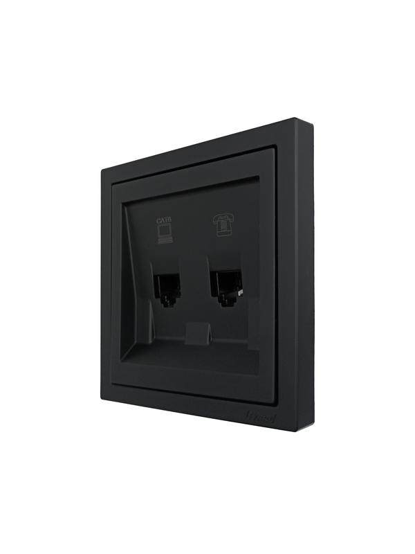 - Розетка компьютер+телефон СП ZIMA IP20 с модулем Cat 6 черн. бархат LEZARD 704-4288-144