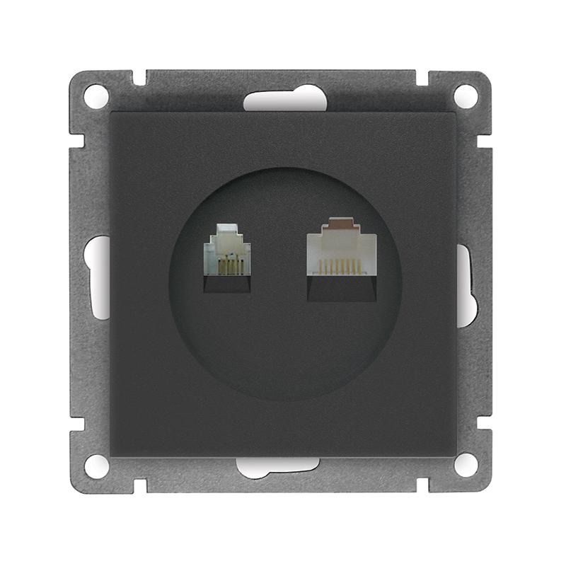 - Розетка компьютерная + телефонная 2-м СП Афина механизм графит Universal A0052-Gr