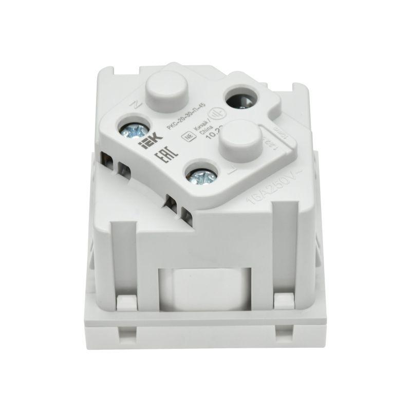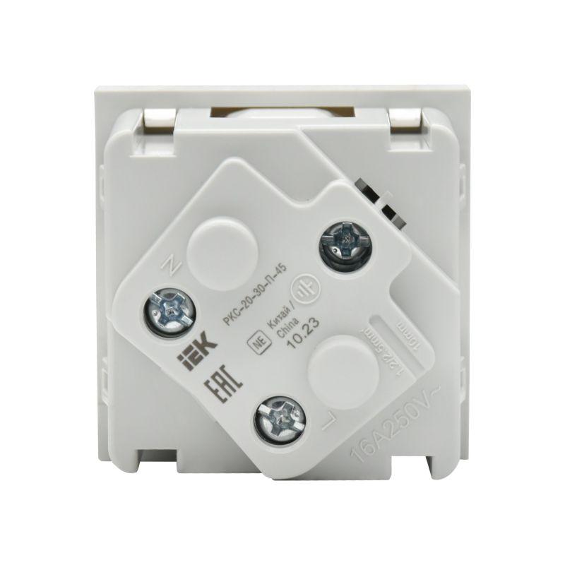 - Розетка PRIMER 45град. с заземл. защ. шторки винт. зажим РКС-20-30-П-45 бел. IEK PR-KK40D-RSZH-2-2-45-K01