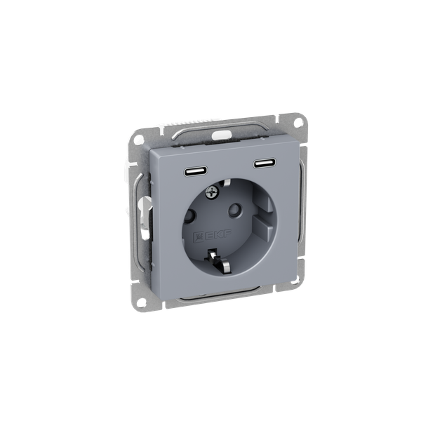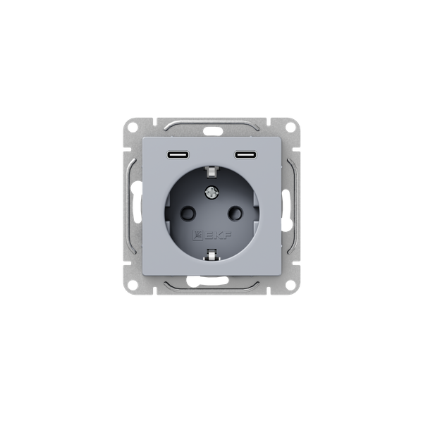- Розетка СП Эпика 16А с 2 USB-C с заземл. защ. шторки механизм алюм. EKF UP1-SOA-111-2USBC