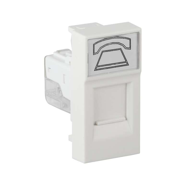- Розетка телефонная 1-м RJ11 1А IP20 45х22.5 модульная бел. Ruvinil АДЛ 13-903