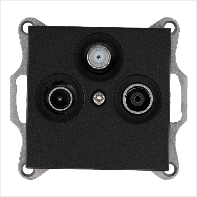 - Розетка телевизионная оконечная TV + FM + SAT 3-м Ф9.5мм механизм антрацит Jasmart G6206B