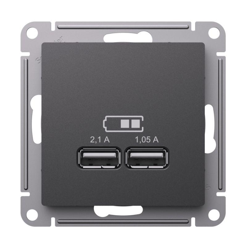 - Розетка USB AtlasDesign тип A+A 5В/2.1А 2х5В/1.05А механизм базальт SE ATN001433