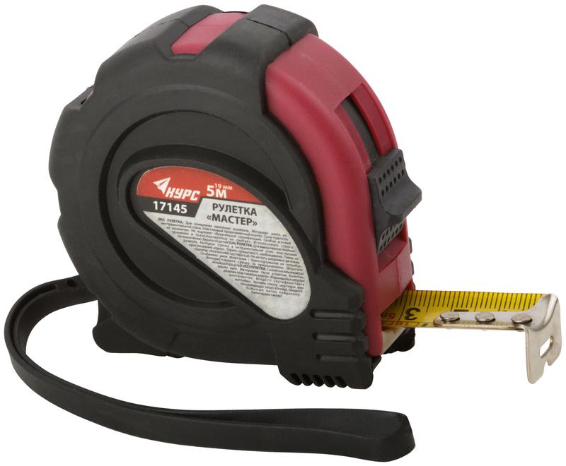 - Рулетка Мастер 5мх19мм прорезиненный корпус КУРС 17145