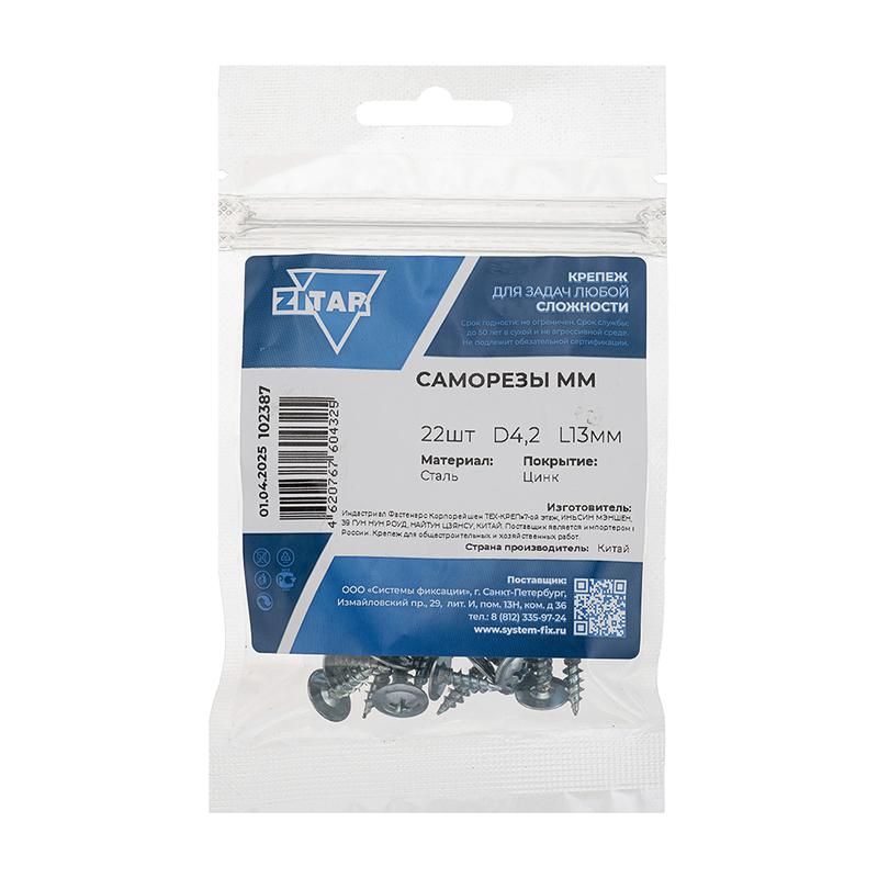 - Саморез усиленный для тонкого метал. листа 4.2х13 (пакет) (уп.22шт) Zitar 102387
