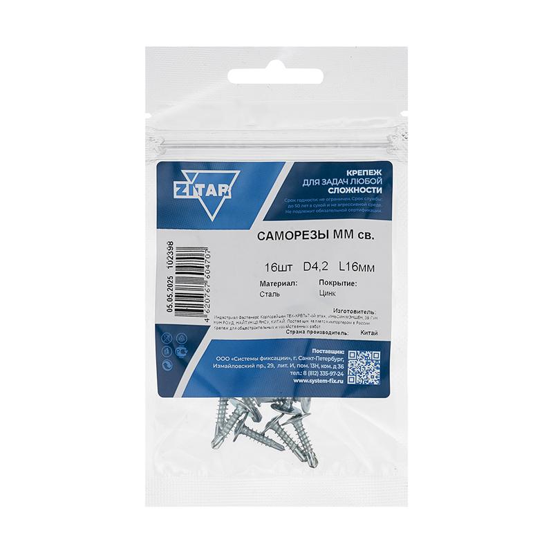 - Саморез усиленный для тонкого метал. листа со сверлом 4.2х16 (пакет) (уп.16шт) Zitar 102398