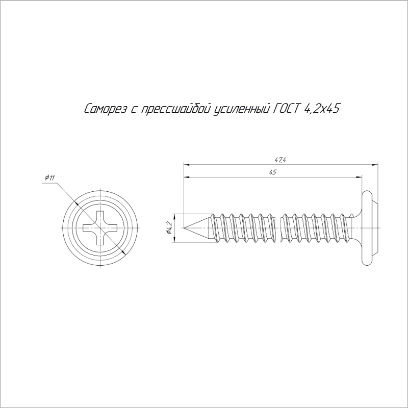 - Саморез с прессшайбой усиленный 4.2х45 (уп.500шт) Промрукав PR17.00359
