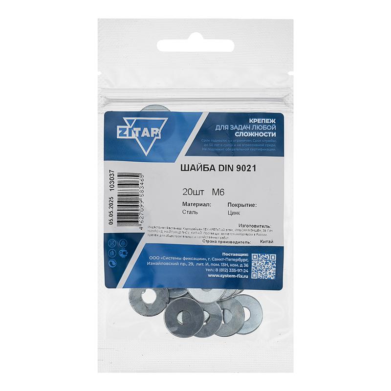 - Шайба кузовная М6 DIN 9021 цинк. (пакет) (уп.20шт) Zitar 103037
