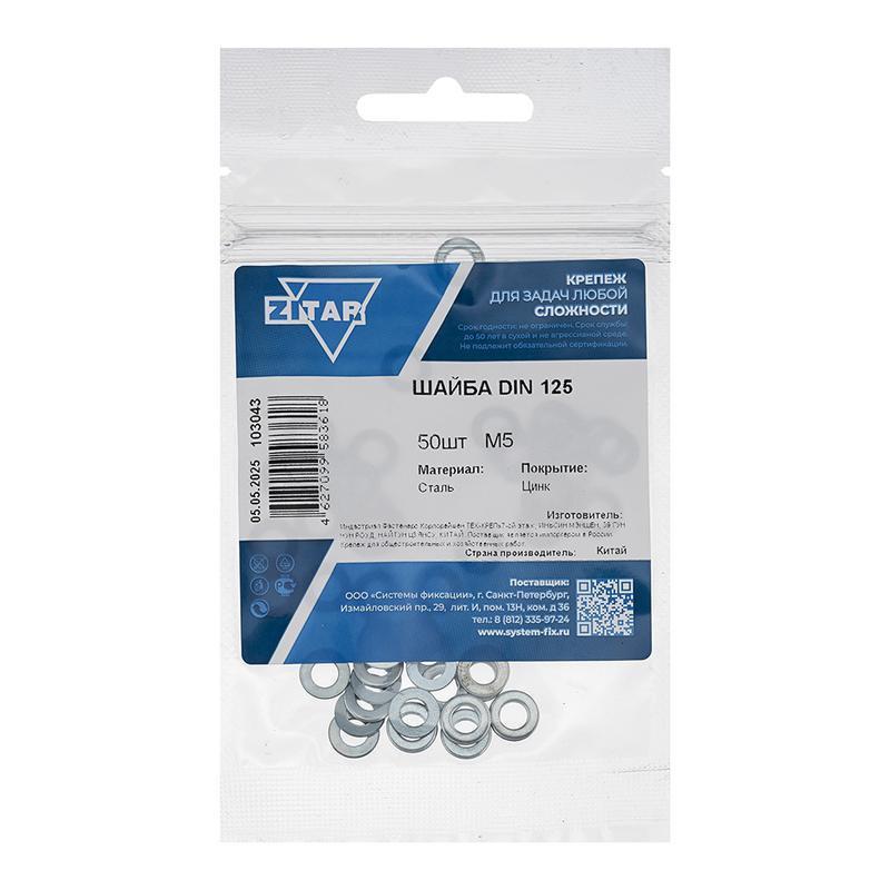 - Шайба плоская М5 DIN 125 цинк. (пакет) (уп.50шт) Zitar 103043