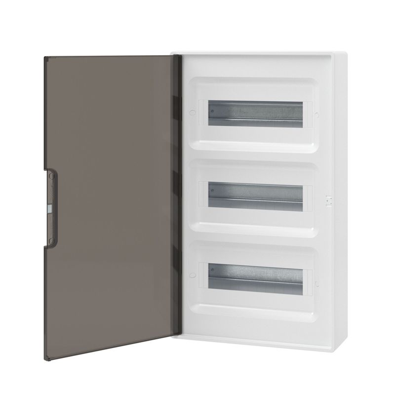 - Щиток настенный Фрейм (FRAME) 36мод. IP41 с тонированной дверцей с шинами PEN 2шт 8 отверст. + 2шт 10 отверст. бел. DKC F36W1WD