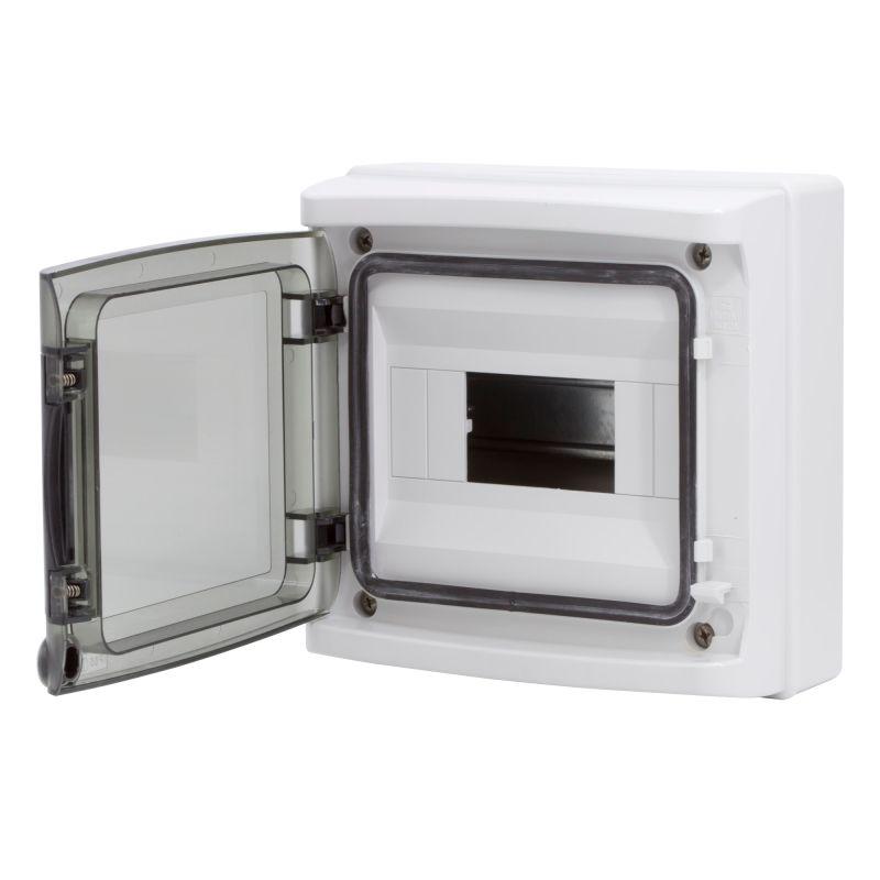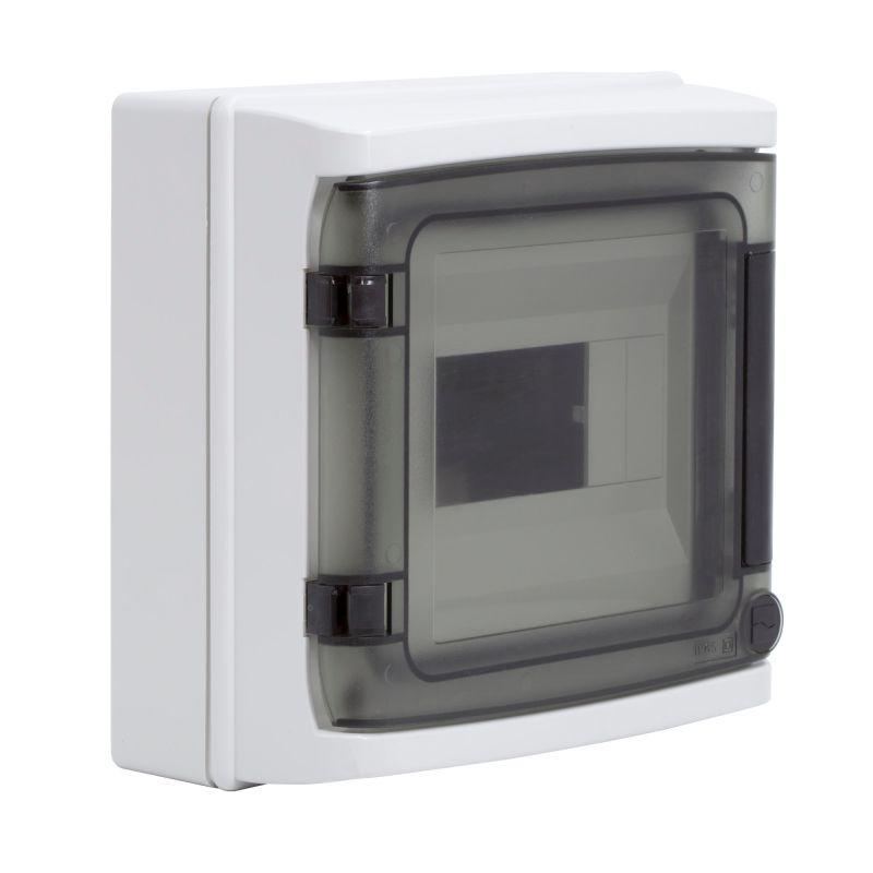 - Щиток настенный 8мод. IP65 с дверцей с клеммн. блоком 63А сер. DKC RB08W6TGD