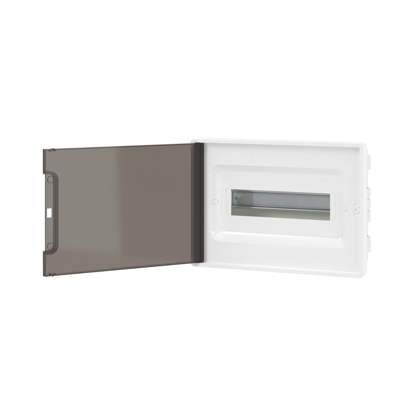 - Щиток встраиваемый Фрейм (FRAME) 12мод с тонированной дверцей с 2 шинами PEN на 6 и 8 отверст. бел. DKC F12B1WD