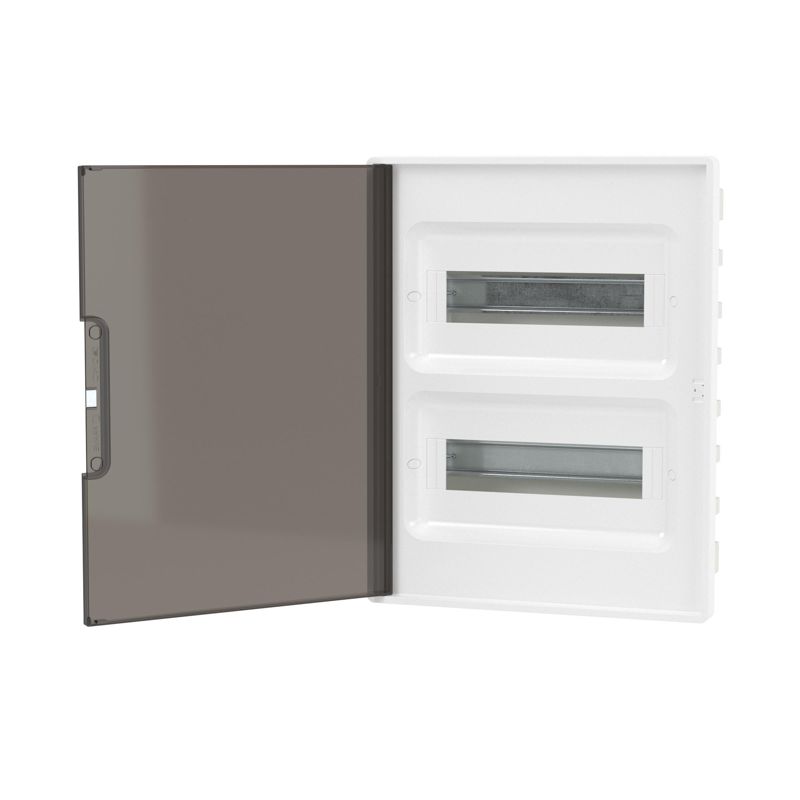 - Щиток встраиваемый FRAME 24мод с тонированной дверцей с 4 шинами PEN (2шт на 8 отверст. и 2шт на 6 отверст.) бел. DKC F24B1WD