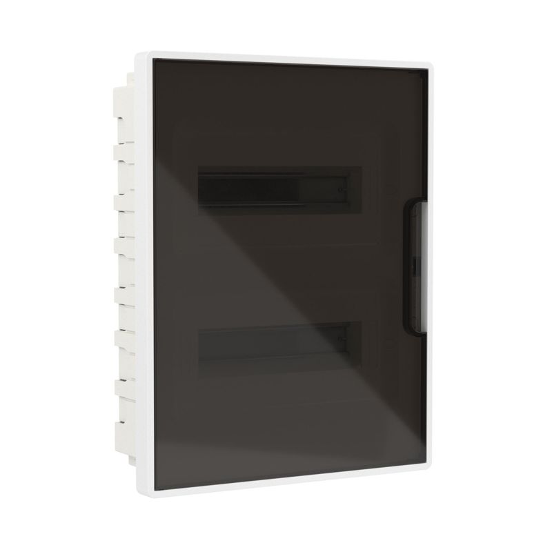 - Щиток встраиваемый Фрейм (FRAME) 24мод с тонированной дверцей с 4 шинами PEN (2шт на 8 отверст. и 2шт на 6 отверст.) бел. DKC F24B1WD