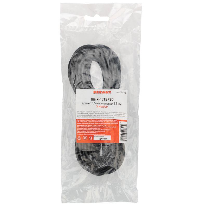 - Шнур 3.5мм штекер стерео-3.5мм штекер стерео 5м Rexant 17-4105