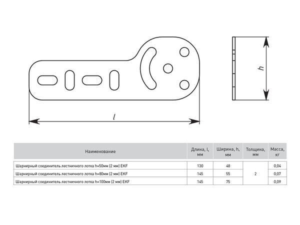 - Соединитель для лестн. лотка шарнирный H=100мм 2мм EKF shlt1002