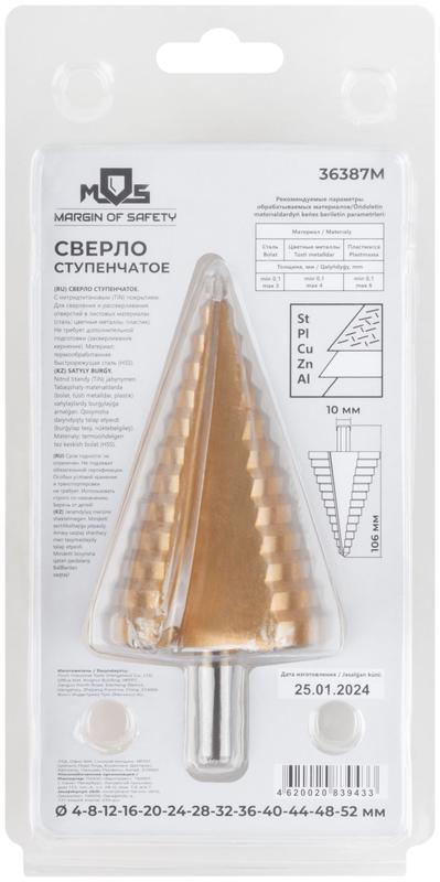 - Сверло ступенчатое HSS по металлу 13 ступеней 4-8-12-16-20-24-28-32-36-40-44-48-52мм MOS 36387М